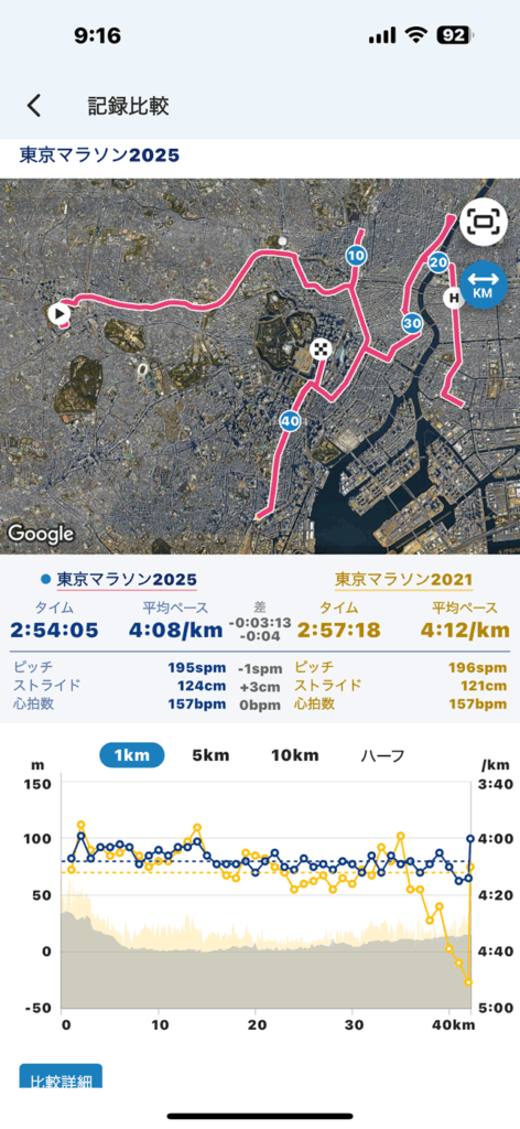 RUNBOZEサービスでは、この“ペース戦略”立案のためのツールとして「記録比較」を提供しています。