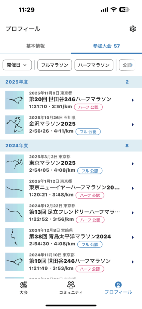 自分自身の年間の活動状況を俯瞰的に把握したり、他ランナーの大会参加ペースを参考にしたり、いろいろと役立てるかと思います。是非、活用ください。