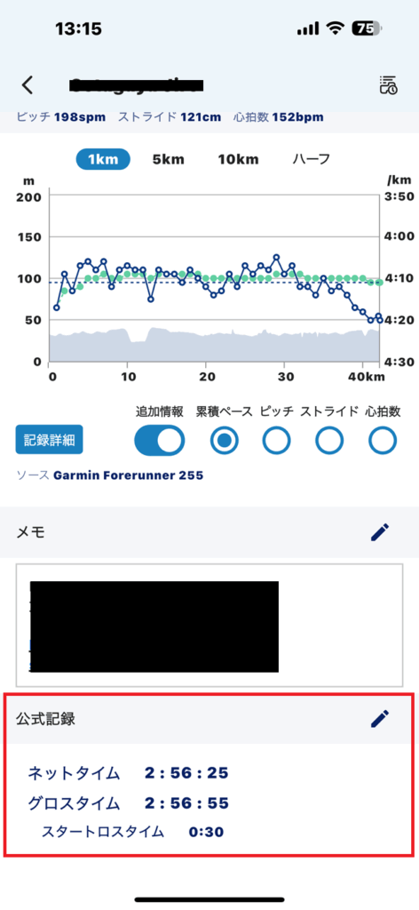 記録管理という点では“公式”記録を残しておきたいというユーザーは多いと思いますが、“公式”記録にはラップタイム情報が無かったり、5kmごとの情報しかなかったりと、詳細な分析には使えないことがほとんどです。