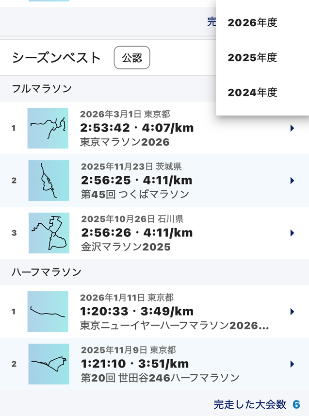 ※ 現在(2026/4/3)、一部環境で「シーズンベスト」の表示ができない事象が観測されています。原因確認および対策を検討中です。